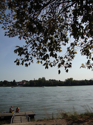 The shade in and around the castle was a welcome respite from the 30°C temperatures and blinding sun, not only for us, but for our poor dog stuck in her permanent black fur coat. Lucky for her, a dip in the river was in store. Unlucky for us, she wouldn't sit still long enough for us to enjoy the lovely benches in the shade along the river for fear of the boats and waterskis going past. What dog is afraid of boats? She was whining, visibly shaking and trying to back up into the bench to get away from such a frightening sight. I have to laugh out loud at people on the street who only see a big black dog and steer clear, afraid of an animal who is afraid of things like car doors shutting and Rolladen (the modern-day answer to shutters). So alas, our big baby kept us from enjoying a glass of wine from the little wine stand along the river that afternoon.